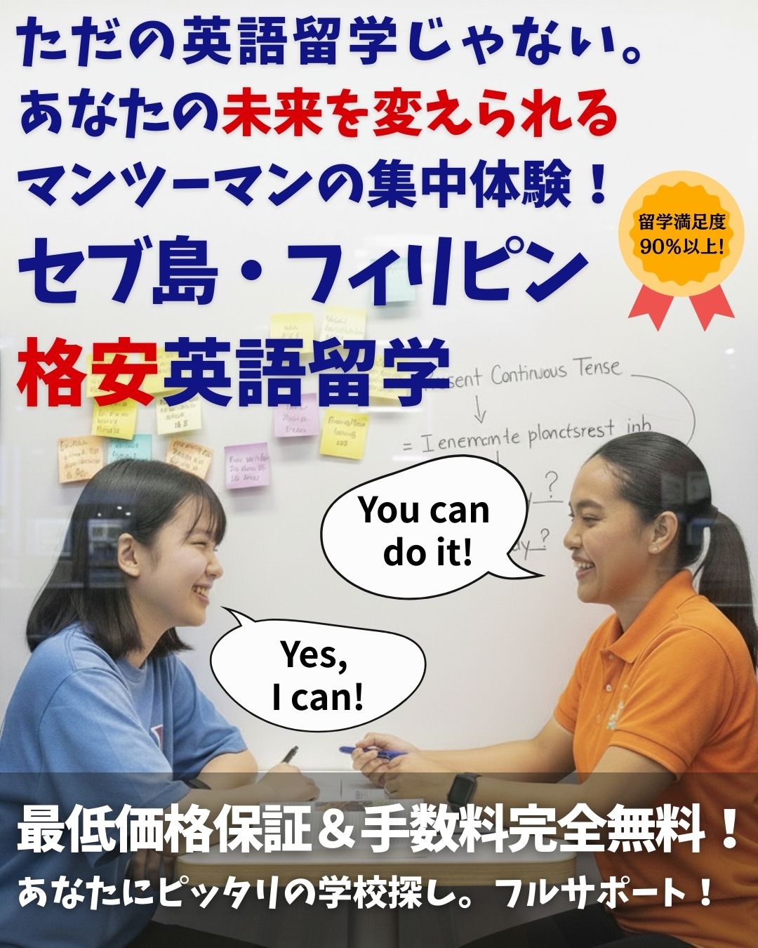【マンツーマン】フィリピン留学・セブ島留学の1番の特徴であり、メリットはマンツーマン授業!
