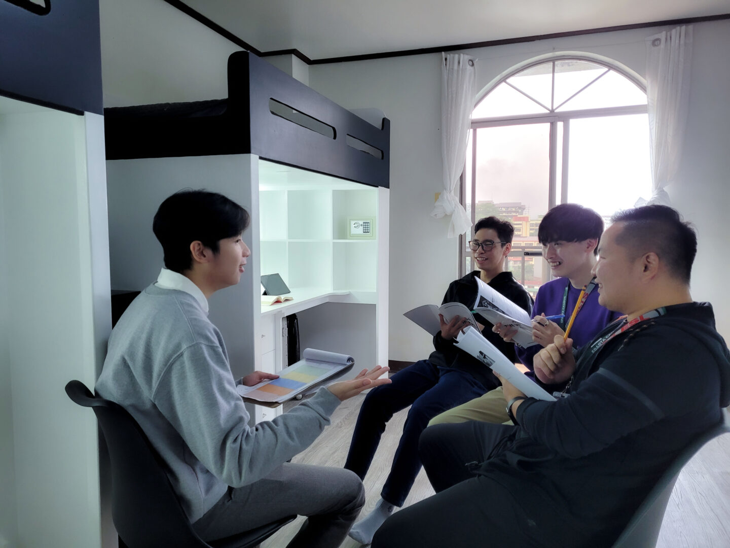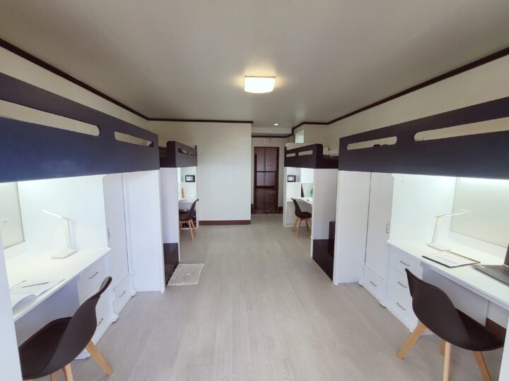 「3+1部屋」は、生徒3名に対しフィリピン人講師1名が同室で生活するシステムです。授業が終わって部屋に戻った後も、今日習った表現の復習や、発音のチェック、宿題のサポートを受けることができます。単に監視されるのではなく、講師は生徒の学習進捗や生活面での悩みを把握し、サポートする役割も担っています。強制的に英語を使わざるを得ない環境を自ら作り出し、24時間英語漬けになりたい方には、これ以上ない理想的な環境です。