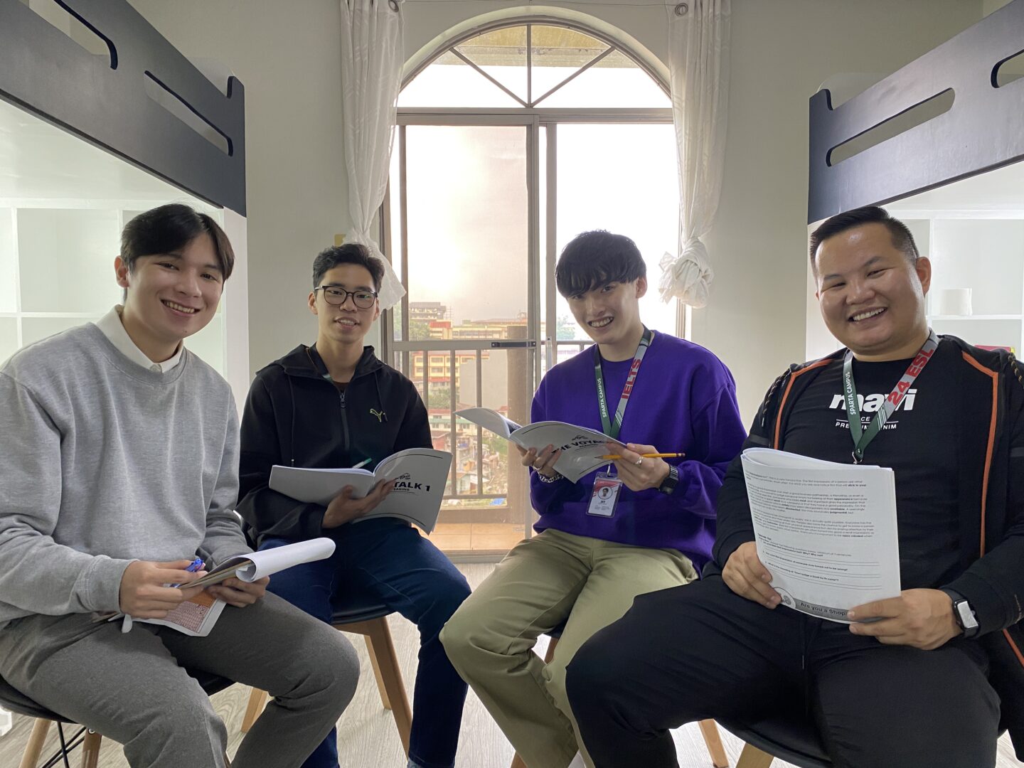 夕食後の「ナイトクラス」は、スパルタキャンパスの大きな特徴です。24 ESLコースでは、単語テスト(毎日20語)やセンテンス暗記テスト、そして強制自習が組み込まれています。IELTSやTOEICコースの生徒は、この時間に毎晩模擬試験を行います。1日が終わるギリギリまで学習タスクが課されるため、学習習慣がない方でも勉強せざるを得ない状況になります。